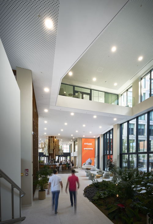Het nieuwe, circulaire kantoorgebouw van Ethias vormt het sluitstuk van het ambitieuze stadsontwikkelingsproject Rives Ardentes in Luik. In deze ‘ecowijk’ draait alles om duurzaamheid, comfort en welzijn. De Ethias-medewerkers die er straks hun intrek nemen, zullen kunnen werken in de beste omstandigheden. Met 2.000 m² SoundDesign plafonds verzekert Knauf er het akoestisch comfort, maar deze hoogwaardige gipsplaten doen meer dan dat.